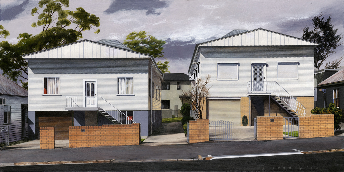 “Evocative artworks by two New Farm residents offer different insights into the Brisbane suburb, their works coming together to help us value the ‘overlooked extraordinariness of the ordinary’“. Sheona Thompson, Houses, Issue 108 Feb 2016.